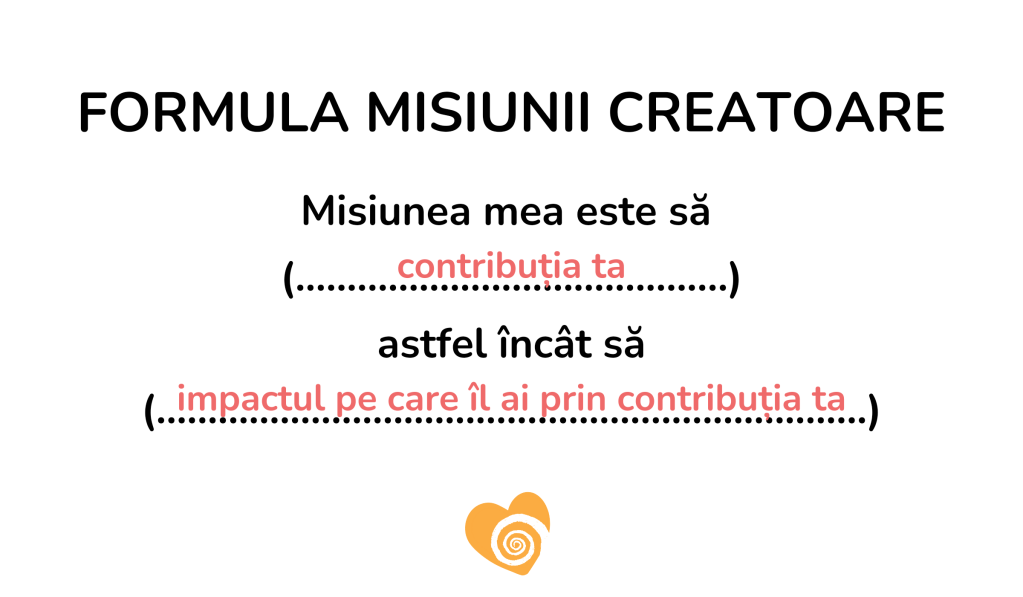 Ca să-ți formulezi misiunea creatoare, îți arăt acum întrebările și formula care îi ajută pe participanții la programul meu anual Atelierul Inimilor Creative ca să-și găsească și ei misiunea creatoare.